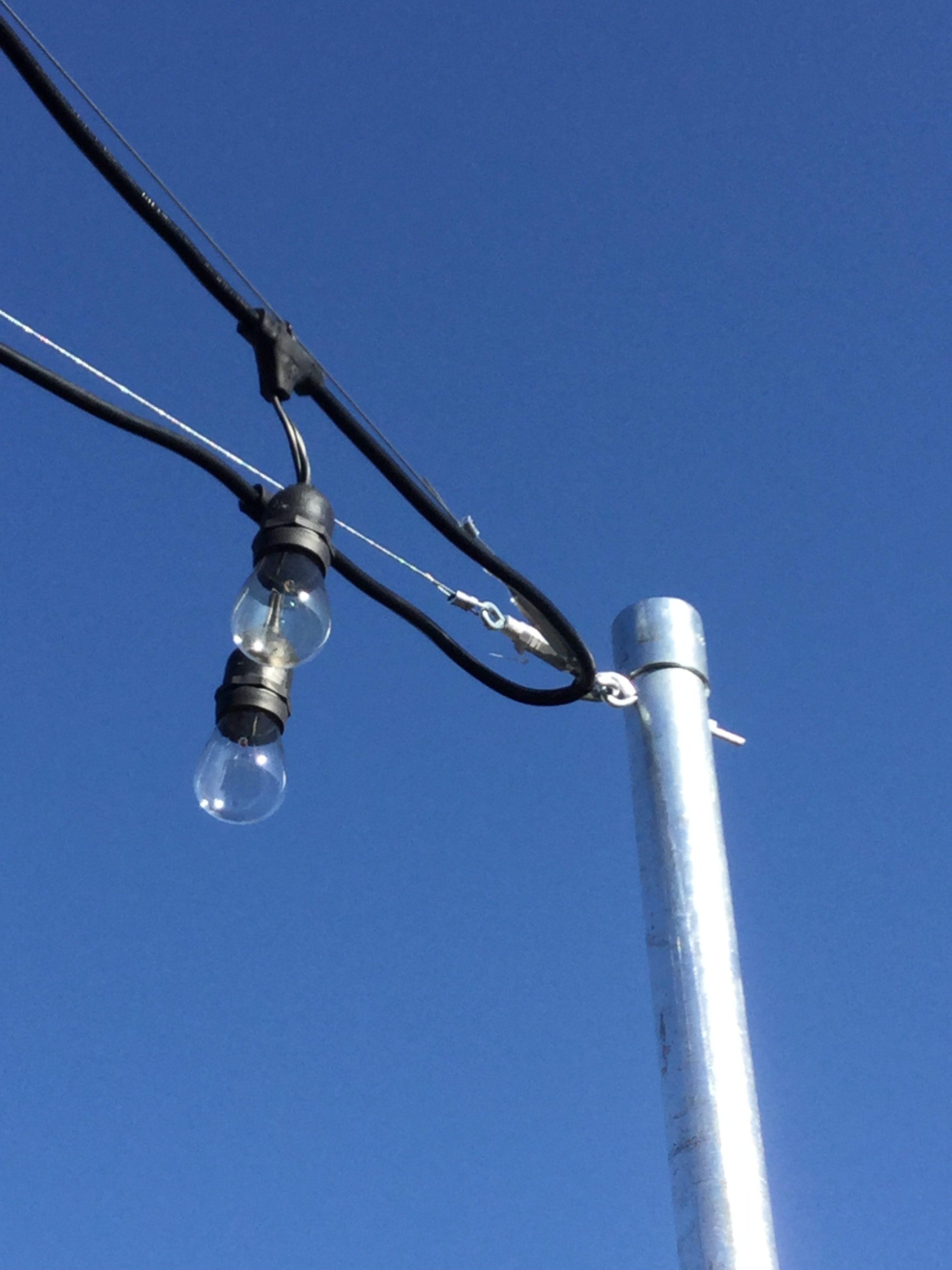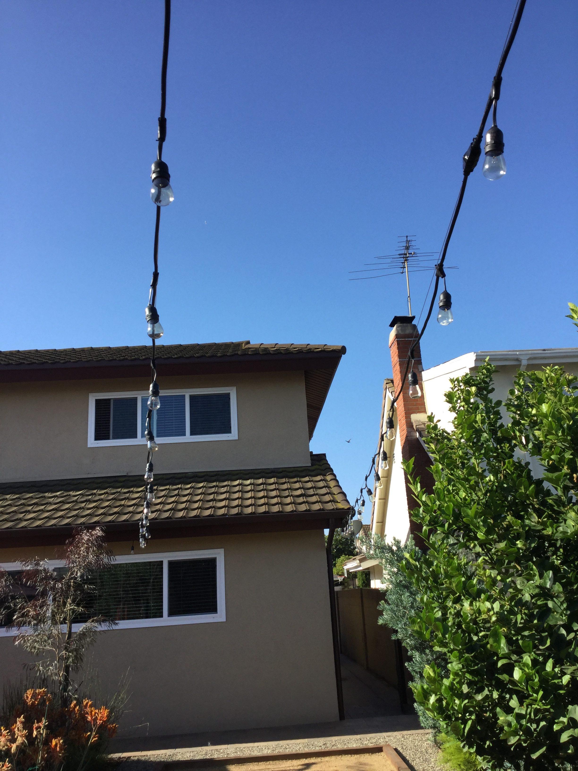 We designed the Café Lighting System in the backyard. Installed all support cables, mounting poles and eyelets.